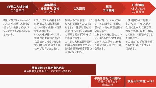 「ベトナムエンジニアの日本客先常駐開発(SES)サービス」は、以下の流れで進められます。