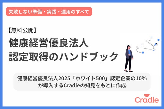 法人向けにウェルビーイング支援サービスを提供し、誰もが安心して力を発揮できる環境づくりを支える株式会社Cradle(本社:東京都渋谷区、代表取締役社長:尾嵜優美/スプツニ子!、以下「Cradle」)は、健康経営優良法人の認定取得を検討する企業担当者向けに、「健康経営優良法人 認定取得のハンドブック」を公開します。