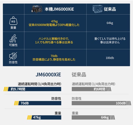 JESIMAIKは、家庭用から業務用まで多様なニーズに応える新世代のインバーター発電機JM4000XiおよびJM6000XiEは2024年1月3日より発売されました。
