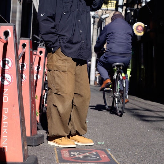 一方で、デニムやカーゴパンツといったカジュアルな装いにもマッチ。