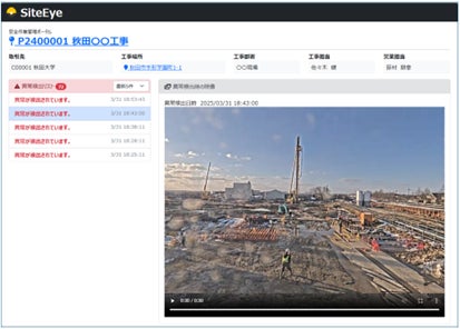 SiteEye安全安心管理サービスは、現場の監視カメラデータをリアルタイムに分析し、作業員の動作を自動識別し、不安全行動を即時に検出・通知することで、現場の安全性と管理効率の向上を支援する、クラウド型の監視ソリューションです。