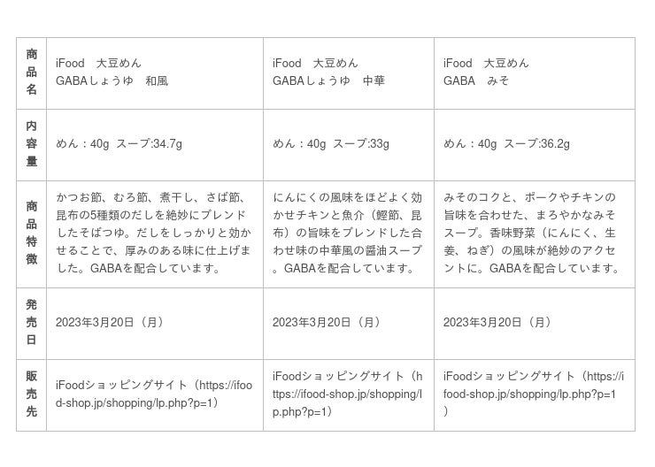 総合食品メーカーのヤマモリ株式会社 (本社:三重県桑名市、代表取締役社長:三林圭介) は、醤油の製造過程で生成できる自社素材「GABA」の素材販売を本格的に開始しました。本品はiFood株式会社が3月20日(月)に発売する「iFood 大豆めん」の添付スープとして、一般の販売ルートで販売する商品としては初めて使用されます。