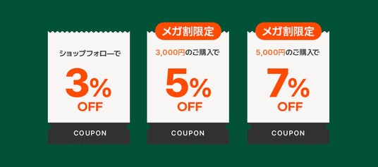 ・ショップフォロー時: 追加3%OFFクーポン