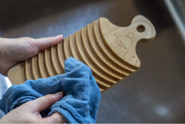 アイコン的製品となっているのがミルク缶入りの洗濯洗剤。酪農の町中標津町にちなんで粉洗剤をミルク缶に入れました。粉洗剤は3種類あり見た目のかわいらしもあって北海道のお土産として国内外の方に選ばれています。詰替えパックはリピーター様より多くの支持をいただいております。粉洗剤の他、素材別の液体洗剤や部分洗い用固形洗濯石鹸やコンパクトサイズの洗濯板など、毎日のお洗濯が快適にまた楽しくなるようなデザインのオリジナル製品からボディケア製品の開発も進めている。