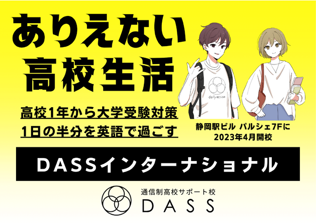 インターナショナルスクールと進学校のハイブリッド校をコンセプトとした静岡の「通信制高校サポート校 DASS」が、2024年4月に入学する全ての新入生の授業料を3年間、半額免除する特待生制度(ファーストペンギン特待生)の採用を決定。