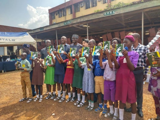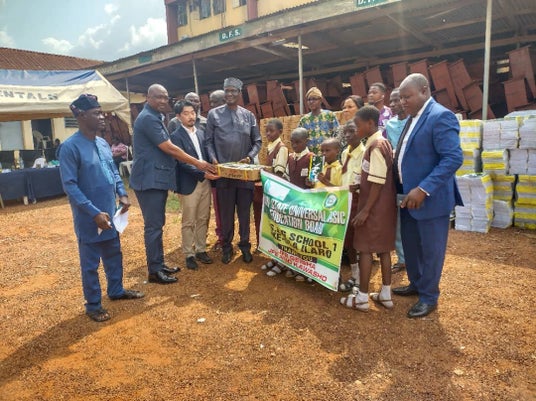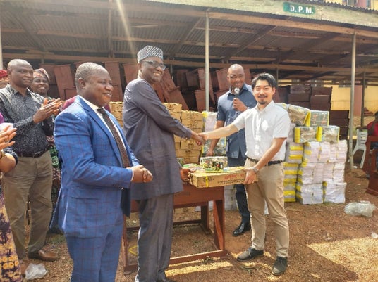ナイジェリアで12月6日開催された寄贈式典の様子は、現地の新聞やローカルテレビのニュースで取り上げられて注目を集めました。式典には、中東川商フーズの村田 光太郎課長を始め、教育省長官のFemi Majekodunmi氏を含む関係者約30人、学校の教師、生徒約125人、メディア関係者約15人が参加。Femi Majekodunmi氏は来賓挨拶で、寄贈への感謝の言葉を述べると共に、寄贈品による生徒たちの成長および学習効果の向上への期待と喜びを語りました。