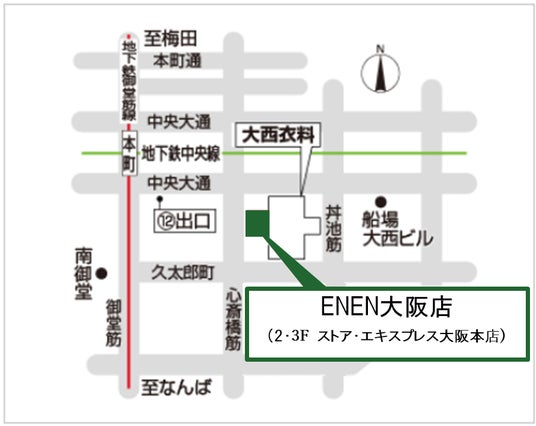 「ENEN大阪店」は、総合流通業を営む創業94年の大西グループ(※1)本社に隣接する、ENENのルーツである店舗什器備品製造販売の株式会社店研創意「ストア・エキスプレス」大阪本店1階を改装し(※2)、同店舗の南側に新たに入口を設置し、オープンします。家具ブランドの集積地である1店舗目の自由が丘店とは異なり、家具購入意欲の高い消費者の偶発的な集客を見込みにくい一方で、着実にENENブランドの認知度が増している今、関西エリアの消費者に実物を見に来ていただく上で利便性の高いエリアでの出店です。家具ブランドとしては挑戦的な立地ですが、新規事業を含めた大西グループの拠点である船場の地域活性化の一端を担う観点もあり、自由が丘店の約2倍の広さとなる約250平方メートル (約75坪)でスケールアップ出店を決定しました。