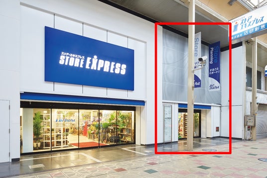 ENEN大阪店 入口予定地(赤枠部分) 〈現ストア・エキスプレス大阪本店1階 約250平方メートル 〉