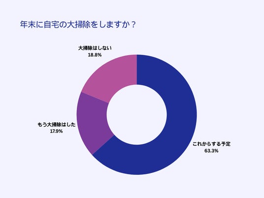 「年末に自宅の大掃除をしますか?」との質問には、「もう大掃除はした(17.9%)」「これからする予定(63.3%)」「大掃除はしない(18.8%)」の結果になりました。