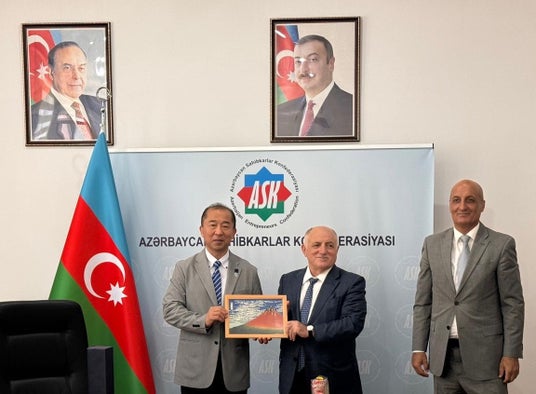 左から:UNIFY社代表の寺田常徳、商工会議所会頭及びアゼルバイジャン全国起業家(経営者)連合代表のMammad Musayev氏、アゼルバイジャン前財務大臣のFikrat Yusifov博士