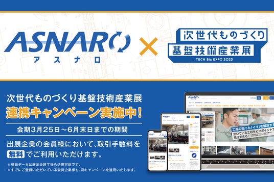 このたび、製造技術を売買できるフリマサイト「ASNARO(アスナロ)」は、『第14回 次世代ものづくり基盤技術産業展―TECH Biz EXPO 2025―』にて公認サービスとして選定されました。