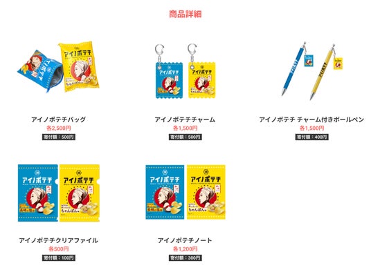 「アイノポテチ」のパッケージデザインを活かしたチャリティアイテムを販売し、「アイノカタチ基金」への寄付に繋げる「アイノポテチプロジェクト」がスタートしました。