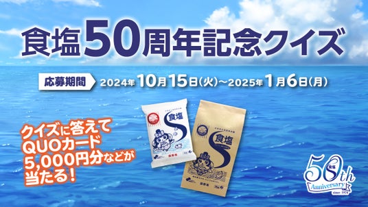 令和7年1月以降、順次店頭に/具体的な使い道、使用量の目安など 分かりやすく!/QUOカードや防災グッズが当たる「食塩50周年記念クイズ」も1月6日まで実施中