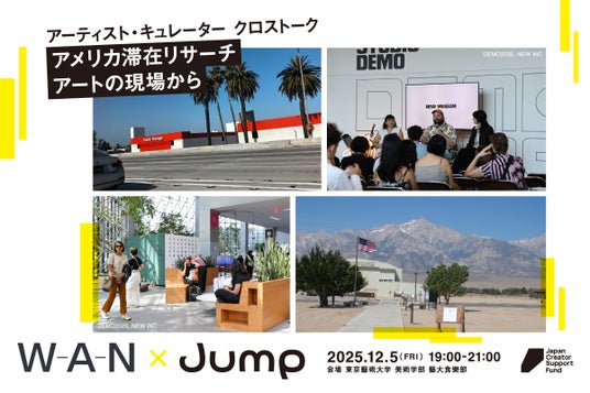この度、12月5日に「WAN×JUMPアーティスト・キュレーター クロストーク アメリカ滞在リサーチ アートの現場から」と題したトークイベントを開催いたします。