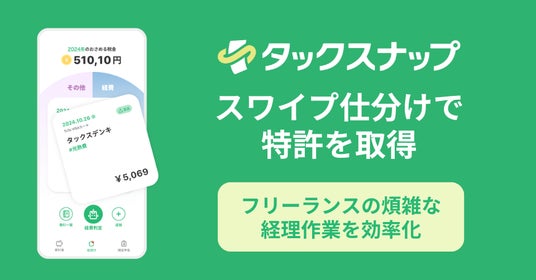 「今回の特許取得は、タックスナップの技術的な革新を証明するとともに、フリーランス・副業の皆様がスマホ操作だけで経理の負担を軽減できる未来を形にしたものです。『スワイプで解決』というシンプルさこそが、私たちが掲げる『Swipe the world』のビジョンの具現化です。今後もフリーランスをサポートするための技術革新を進めてまいります。」