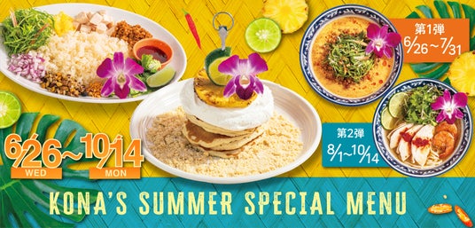 株式会社KONA’S(本社:東京都渋谷区、代表取締役社長:阿部 和剛)が展開する、食の感動体験を追求し「いちばん近いハワイ」をコンセプトに掲げるハワイアン カフェ・レストラン「コナズ珈琲」は、2024年6月26日(水)から10月14日(月)までの間、夏の新作メニューを販売いたします。