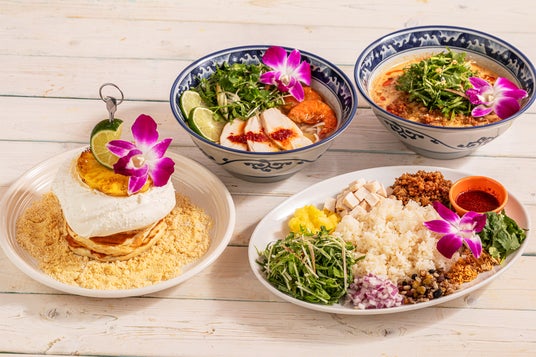 コナズ珈琲で定番のハワイアンパンケーキから、パイナップルを3枚重ねた「ハワイアンパイナップルパンケーキ」が登場します。また、“ハワイアンエスニック”を掲げたシリーズは毎年多くのお客さまにご好評をいただき、今年で4年目に突入しました。ハワイには様々な地域から人が移り住み、多様な文化を織りなしています。ハワイでも愛されているエスニック料理を、コナズ珈琲ならではの“ハワイアンエスニック”としてご用意しました。新作の「Kona's ベジタブルフライドライス」に加えて、期間によって異なるフォーが2種類。クリーミーで旨辛な「ココナッツ TANTANフォー」と、爽やかな「チキン&シュリンプ エスニックフォー」、どちらもぜひお楽しみください。