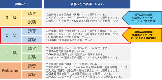 この度、一般社団法人 炭素会計アドバイザー協会(代表理事:鈴木 修一郎)が運営する「炭素会計アドバイザー資格2級」が、環境省が実施する「脱炭素アドバイザー資格制度認定事業」において、「環境省認定制度 脱炭素アドバイザー アドバンスト」の認定(認定日:2月1日)を受けましたことを、お知らせします。