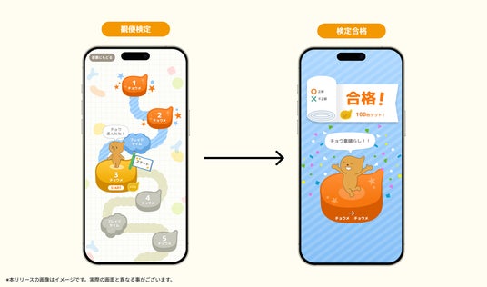 本機能は、腸活プロデューサー 長瀬みなみ氏監修の、便質を確認するための「観便」や「便質改善の方法」に関しての検定を受けられる機能です。ゲーム要素を取り入れることで、ユーザーが継続的に楽しくうんちや便質について学べるサービス設計となっています。