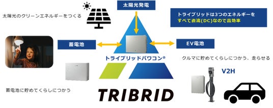 このたび、「太陽光発電」「蓄電池」「EV(電気自動車)」の3つのエネルギーをコントロールし、電気代の最小化が目指せるトライブリッド蓄電システム(R)の新商品を開発し、市場導入いたします。※EVには、PHVも含まれております。