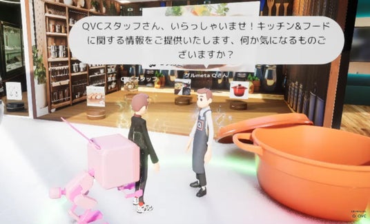 NTTドコモとテレビショッピングを中心としたマルチプラットフォーム通販企業の株式会社QVCジャパンと株式会社Relicは、ドコモが保有する超多人数接続技術を用いた、Relicが運営するメタコミュニケーションサービス「MetaMe(R)(メタミー)」上で展開しているバーチャルショッピング空間「メタバースQVCお買い物PLAZA」(以下、本空間)にて、初の試みとなるAIショップ店員第1号「グルmetaQ(グルメタキュー)」による接客サービスを2024年4月14日(日)までの期間限定で実施します。3Fキッチン&フードブースにて、お客さまアバターたちとの会話を通じて成長していく接客技術をこの機会にぜひご体験ください。