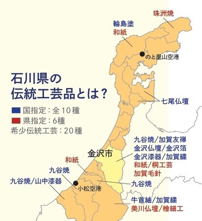 石川県は江戸時代に花開いた加賀百万石文化が今なお息づく文化県です。国指定の伝統的工芸品を10品目、県指定などその他の工芸品を26品目有し、輪島塗、山中漆器、九谷焼、加賀友禅等、多くの伝統工芸の技が受け継がれています。(石川の伝統工芸:https://www.icnet.or.jp/dentou/)