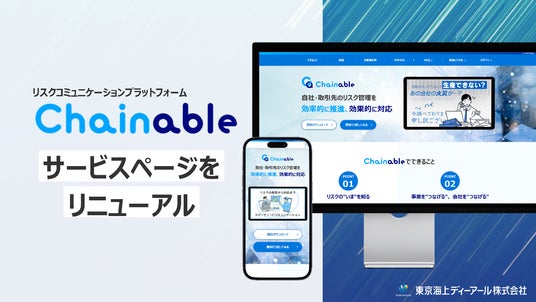 https://tdr-scpf.tokiomarine-e.jp/chainable/LP.html今回のリニューアルを通じて、Chainableを活用いただくことで解決できる課題や操作感をイメージしやすいホームページとなることを目指しました。今後もお客様の声を大切にし、サービスの向上に努めてまいります。<「Chainable(チェイナブル)」とは>