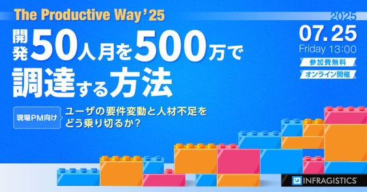 インフラジスティックス・ジャパン株式会社は、システム開発現場のプロジェクトマネージャー・プロダクトマネージャーを対象とした特別オンラインイベント「The Productive Way'25」を開催します。
