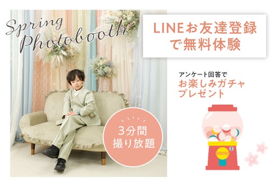 当日は春をモチーフとした撮影ブースを設置し、3分間お客様のスマホで自由に撮影いただけます。お子様の目線や表情などをプロが調整することで、撮影が難しい写真を撮影いただけます。LINEのお友達登録をすることでブースは無料でご利用いただけます。