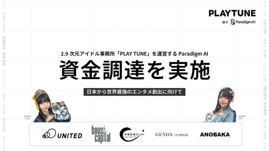 2.9次元アイドル事務所「PLAY TUNE」を運営するParadigm AI株式会社(本社:東京都新宿区、代表取締役CEO:吉田泰陽)は、PreシリーズAラウンドにおいて、ユナイテッド株式会社、Boost Capital、千葉道場ファンド、GENDA Capital、ANOBAKA、川邊健太郎(個人)を引受先とする第三者割当増資を実施しました。