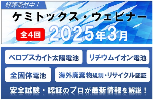 (株)ケミトックス(本社:東京都大田区上池台1-14-18、代表取締役:中山紘一)は、2025年3月に全4回のWEBセミナーを開催いたします。