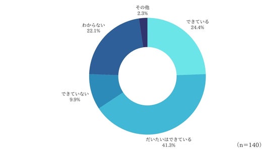 社内でマーケティングを行っている企業に対して社内目標の達成度について質問したところ、「できている」「だいたいはできている」が6割以上を占める結果となった。