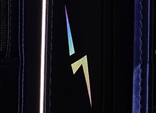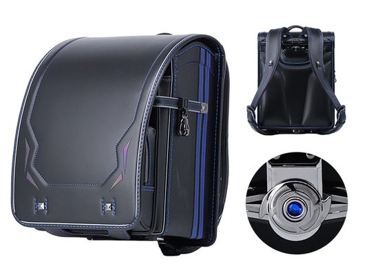 車のライトで反射板が虹色に光る虹色に光る反射板かぶせのパイピングと稲妻のモチーフ、マチベルト、肩ベルトのパイピングに虹色に光る反射材を搭載しました。ドライバーからの視認性が向上し、登下校時の安全性を高めます。