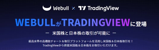 2024年11月15日 - 人気の取引プラットフォームを提供するWebull Corporation(「Webull」)の日本法人であるウィブル証券株式会社(「ウィブル証券」)は本日、トレーダーと投資家向けのチャートプラットフォームおよびソーシャルネットワークであるTradingViewとの連携を発表しました。この連携により日本のWebullユーザーは、TradingViewのチャートプラットフォームから米国株と日本株の両方を直接取引できるようになります。さらに、何百万人もの日本のTradingViewユーザーがWebullのトレードシステムに簡単に接続し、米国株と日本株をお取引いただけるようになります。