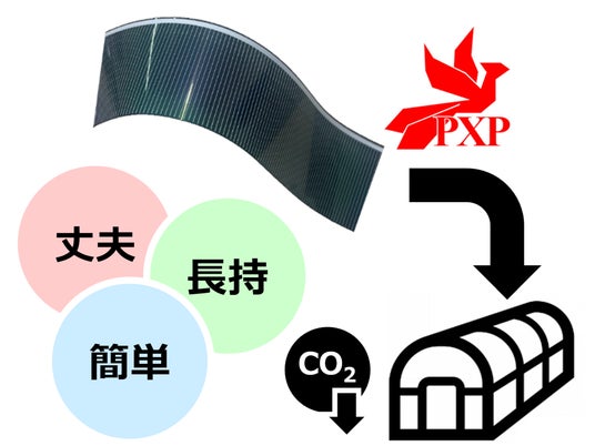 PXPは、施設営農型太陽光発電を低コスト化し、大幅に普及させる事を目指しており、本事業は丈夫で長持ち、簡単取り付け可能な新型軽量太陽光パネルを開発し、それを用いて実際にハウス農業での実証を行い、有効性を検証することを目的としています。