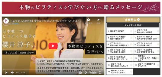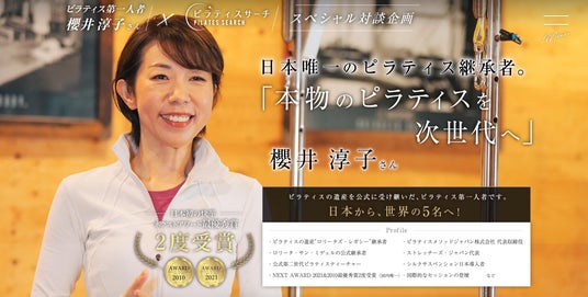 このたび、ピラティス専門情報メディア「ピラティスサーチ(https://pilates-search.com/)」は、世界で5名しか存在しないピラティスの正式継承者の一人である「櫻井淳子」氏をお迎えし、特別対談インタビュー動画を公開いたしました。(https://pilates-search.com/special-interview/)