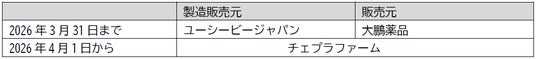 *販売移管日は、本製品の情報提供・収集等の活動が、大鵬薬品からチェプラファームへ移管する日をお示ししております。