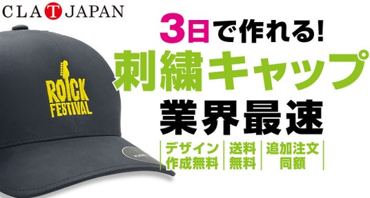 株式会社フォーカス(本社:山梨県甲斐市、代表取締役:常松 憲太)が運営するオリジナルグッズ製作サイト「CLAT-JAPAN(読み:クラティージャパン)以下、クラティージャパン」において、オリジナル刺繍キャップの最短3日後発送を開始します。さらに、「最短3日後発送」が可能になった理由とクラティージャパンのご注文サービスをご紹介します。今まで納期を理由にキャップ刺繍を諦めていた方も、この機会に是非ご利用下さい。