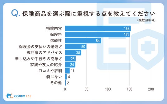 3:保険商品を選ぶ際に重視する点を教えてください(複数回答可)(有効回答者数:187人)