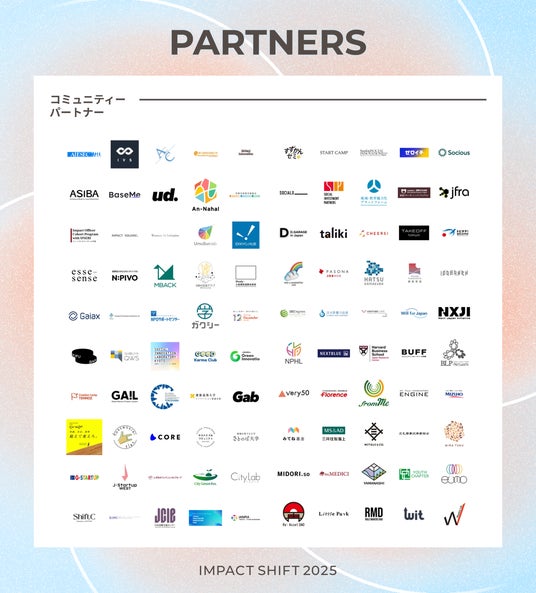 下記のスポンサー、企画パートナー、メディアパートナー、コミュニティパートナー、後援団体の皆様とともに「IMPACT SHIFT 2025」を開催することができました。改めて御礼申し上げます。