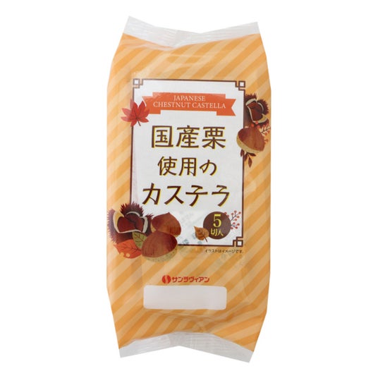 【国産栗使用のカステラ】渋皮付き和栗ペーストと六甲山麓牛乳でふんわりと焼き上げたカステラです。和栗の上品でほっくりと優しい味わいをお楽しみいただけます。