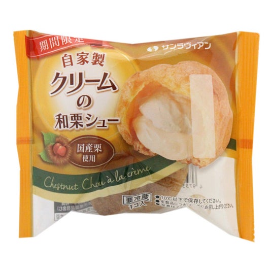 【自家製クリームの和栗シュー】上品な味わいの和栗ホイップと、自社で丁寧に炊き上げたカスタードクリームの2層仕立て。