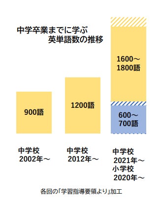 不登校児童生徒数が過去最多を更新し続ける中で、当研究所が注視しているのが「英語教育の急激な難化」です。過去2回の学習指導要領改定を経て、中学卒業までに習得すべき語彙数は従来の約900~950語から2,500語超へと3倍近くに激増しました。