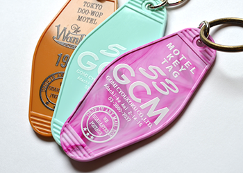 ■ 「推し色」市場をにフィットするオリジナル製作も容易な五味彫刻の「MOTEL KEY TAG」。