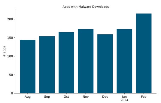 ネットスコープがマルウェアのダウンロードを検出したアプリの数は大幅に増加し、過去最高の215アプリに上りました。