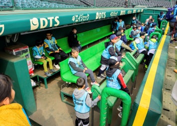 実際に選手が通る通路を使い、普段は入ることのできないブルペンやグラウンド、ベンチを訪れた子どもたち。最初の緊張した表情はすっかり消え、興奮と喜びに満ちた笑顔が溢れていました。