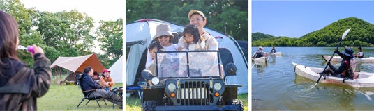 地元の食材を使ったキャンプ飯が楽しめる「UNBY BOWL STAND」や、Eバイクやバギーをレンタルして楽しむ湖畔散策、目の前に広がる千丈寺湖でできるSUP体験など、三田でしかできない体験も提供しています。
