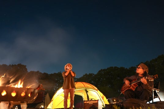心地いい音楽が流れる空間で、お隣同士でキャンプギアの話をしたり、子育ての話をしたり、はたまた恋話や占いが始まったり、今日初めて会った人たちが笑い合って食事をともにする、とても優しい時間でした。