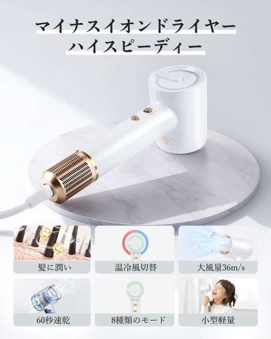 製品:「Bopwavy」ブランドのマイナスイオンヘアドライヤーは、内部に110万rpmで回転する高速モーターを内蔵しています。 強い風は髪の水分を補給することもできます。