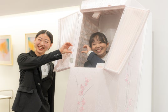 入社式では、棺に入って記念写真を撮る「入棺チェキ」など、葬儀業界ならではのユニークな体験も行われました。三和物産では、今後も時代の変化に対応しながら、「つながりが実感できる新たな別れのカタチをつくる」といったミッションの実現に向け、様々な取り組みを行ってまいります。